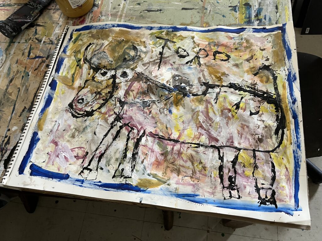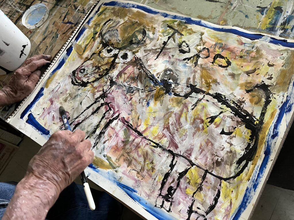Manuel Miranda has been making art since 1979. His work is often described as outsider, raw, automatism, folk and Art Brut. His work often depicts animals and fictional characters in a Mexican folk art style. Acrylic, India ink, pencil, crayon and charcoal are his preferred media.
