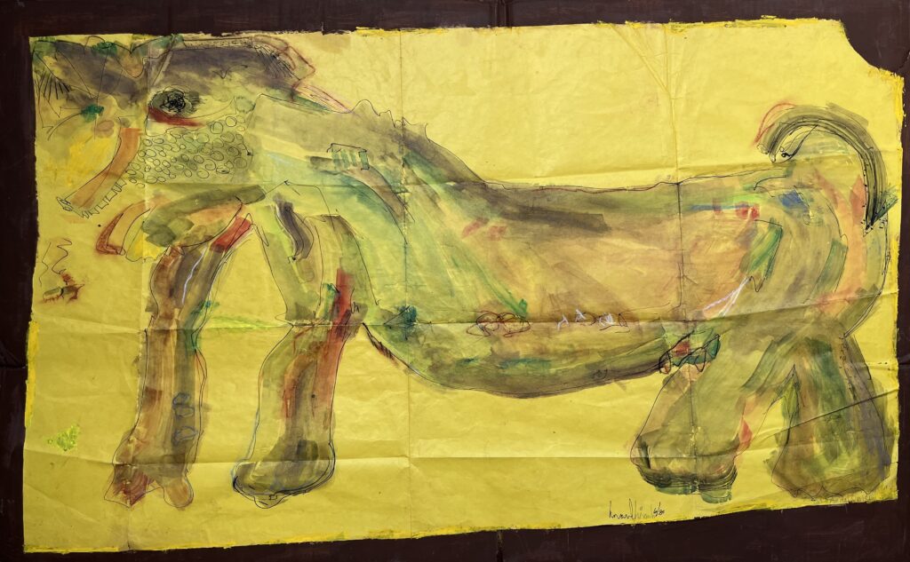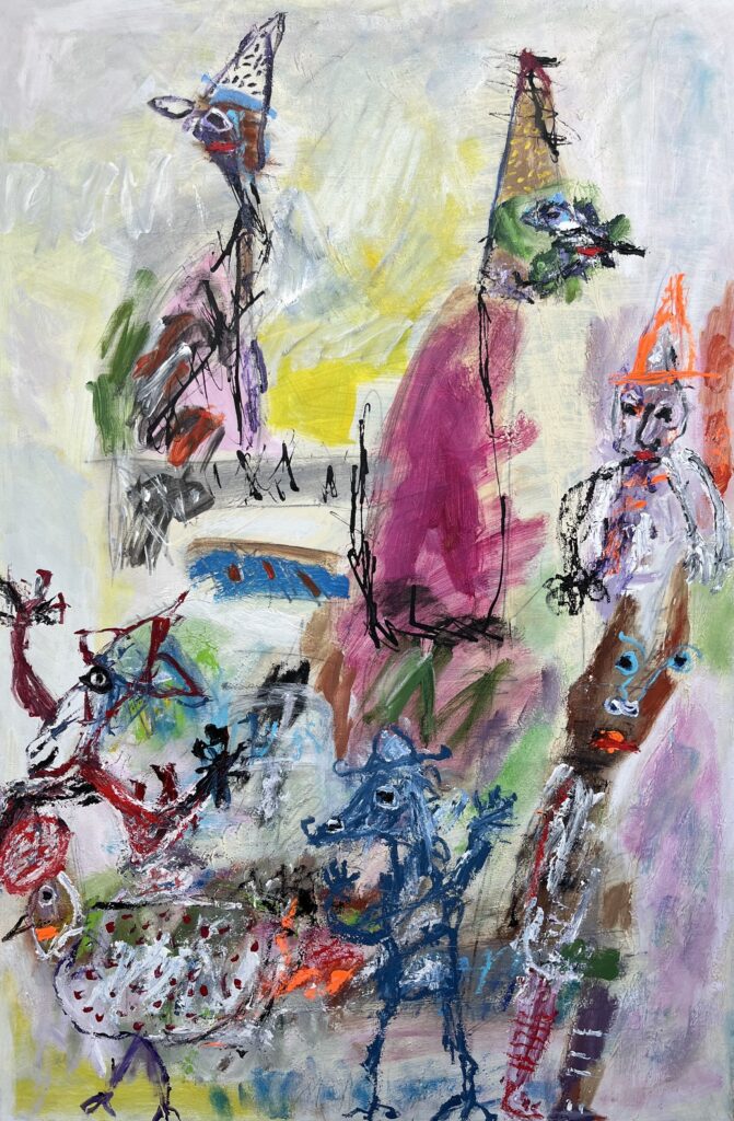 Acrylic and crayon on paper