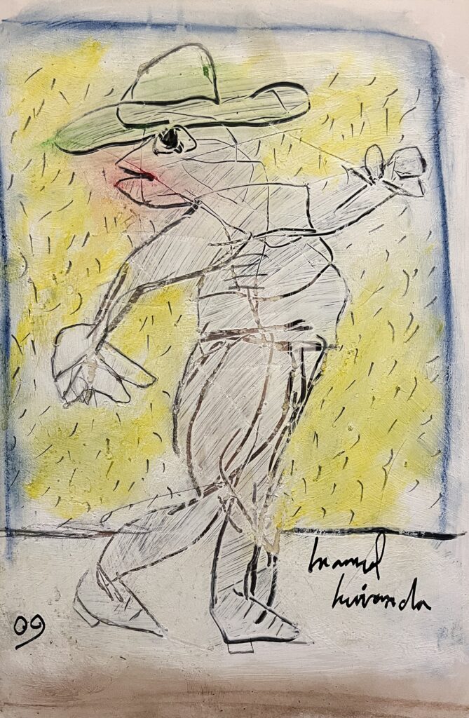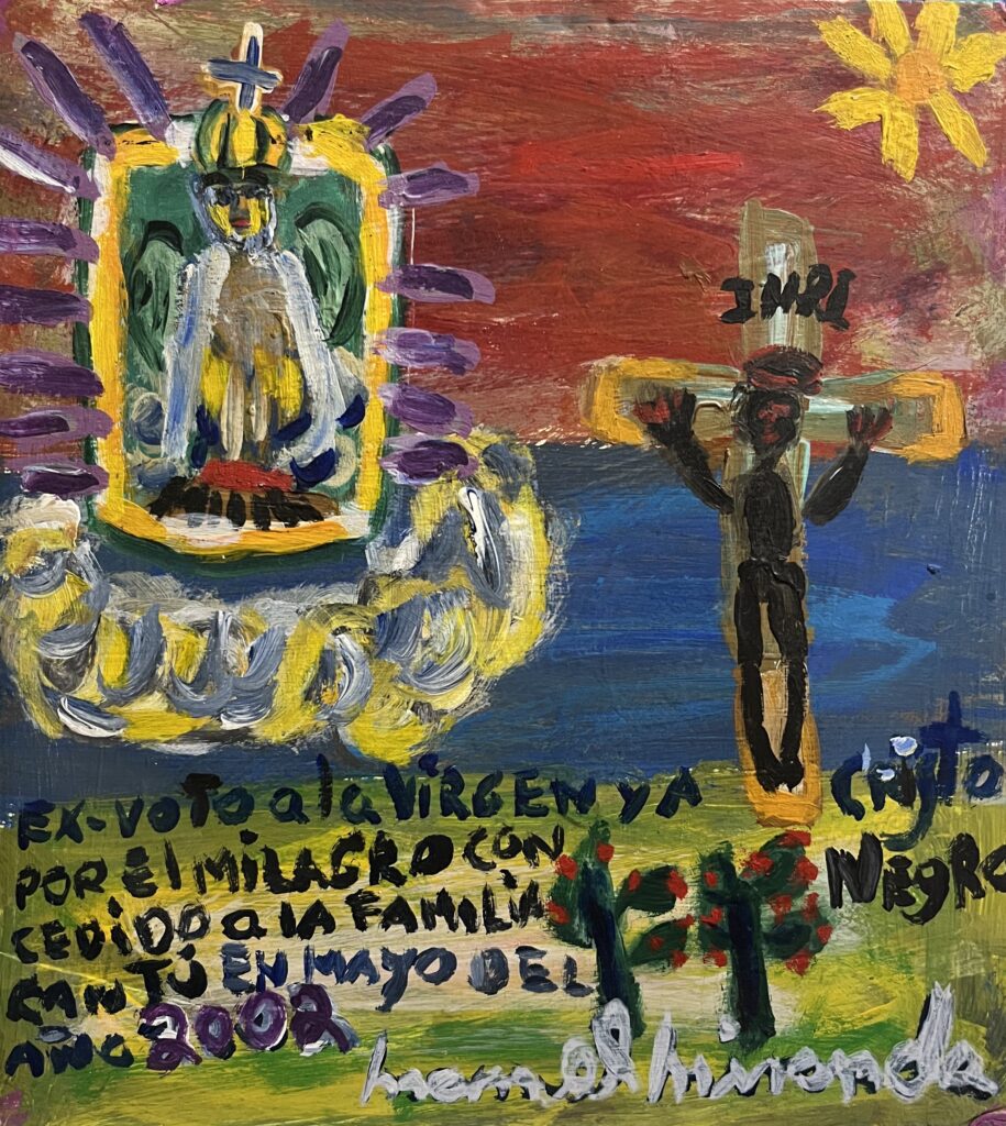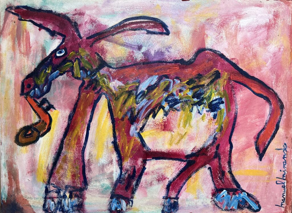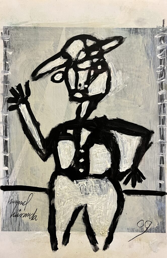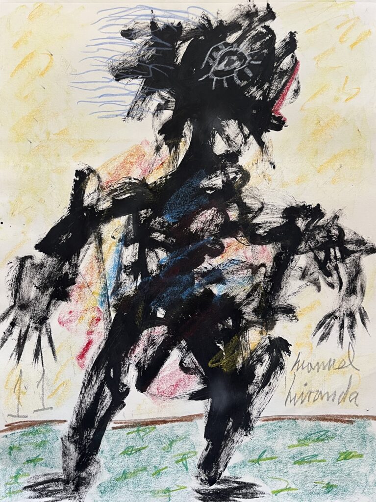 Acrylic on stretched canvas is one of Miranda’s preferred media. He also paints on canvas panels, wood panels, cardboard, and paper.