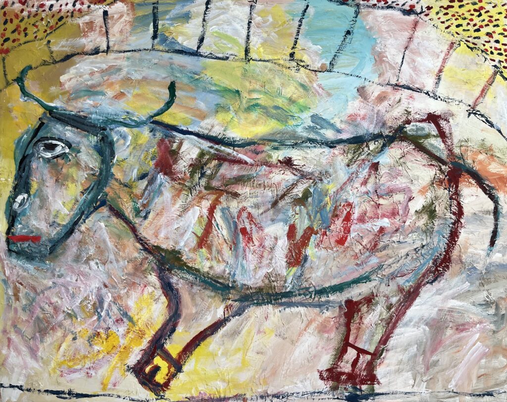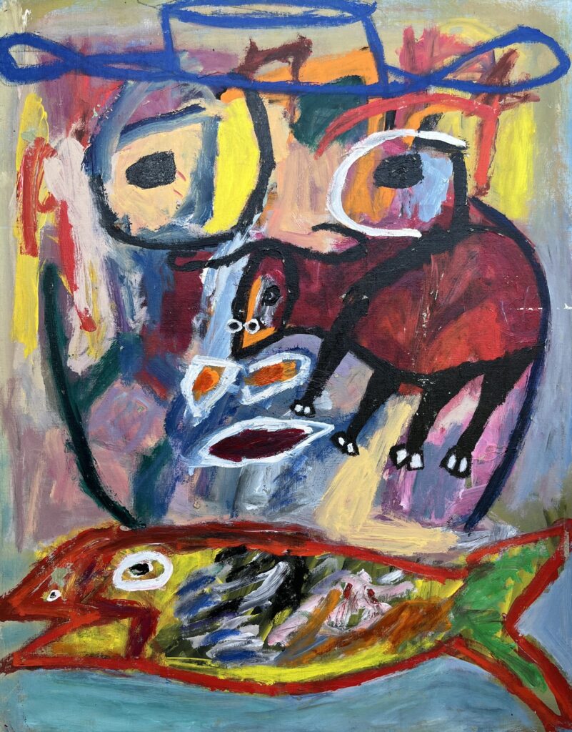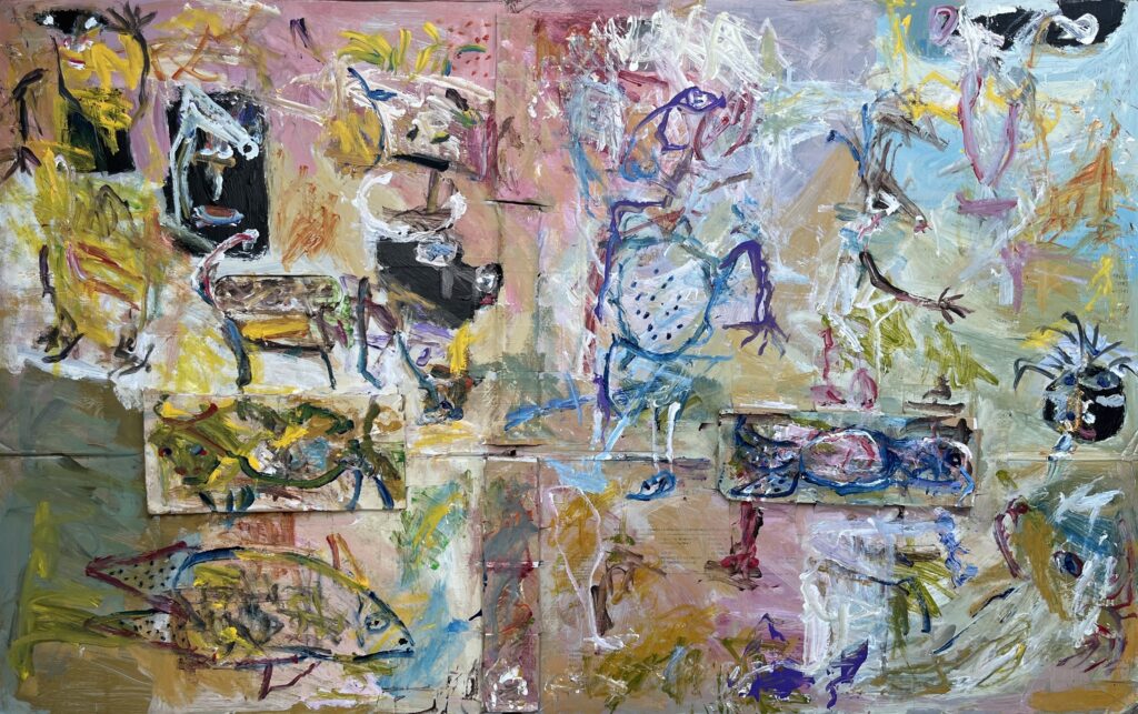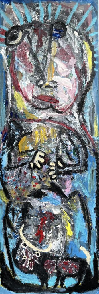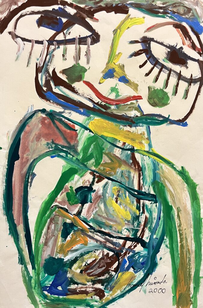 Acrylic on stretched canvas is one of Miranda’s preferred media. He also paints on canvas panels, wood panels, cardboard, and paper.